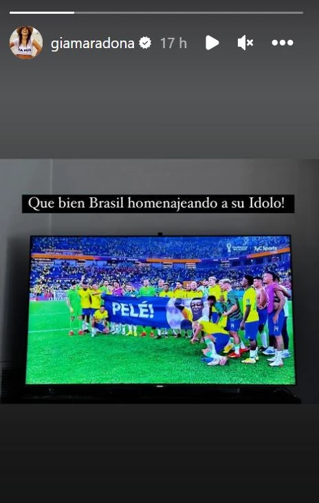 "¡Qué bien Brasil homenajeando a su ídolo!", expresó la hermana de Dalma, mensaje que se leyó como un reclamo para la selección liderada por Lionel Messi ante la ausencia en este mundial de recordatorios similares a su padre, que murió el 25 de noviembre de 2020.
