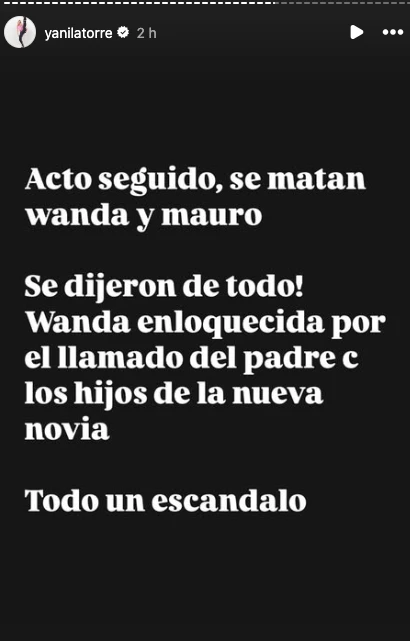 Pasado ese momento, Latorre confesó el momento de máxima tensión que se vivió: “Acto seguido, se matan Wanda y Mauro. Se dijeron de todo. Wanda enloquecida por el llamado del padre con los hijos de la nueva novia”.