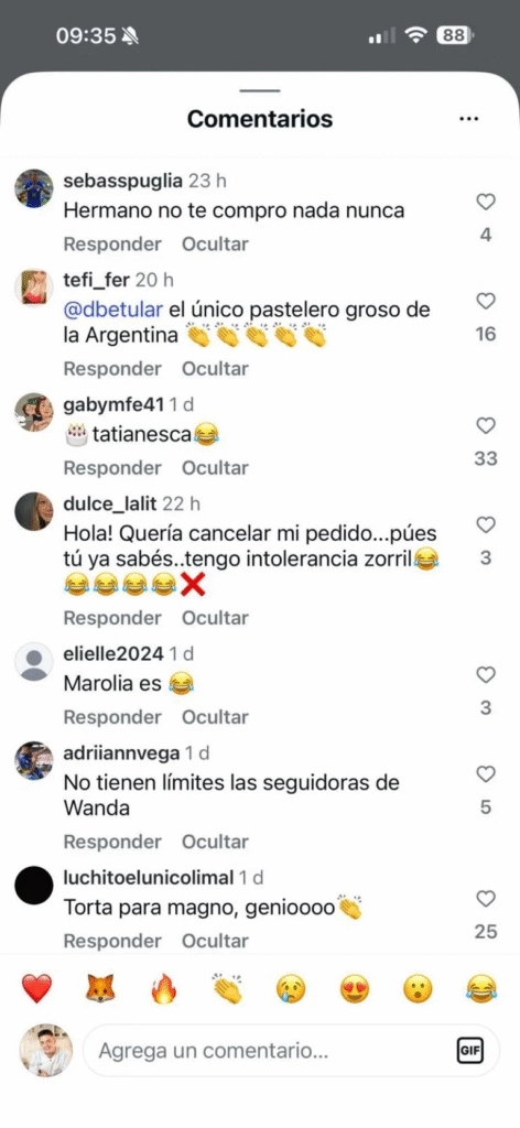 "Tortas sabor a marido ajeno" “Sabes hacer la torta Tatiana? Esa que cuando la probás, empezás a trincarte maridos ajenos"; "Qué lástima empañar tu laburo por una torta para la Tati" y “¿Para encargar una torta tengo robar un macho ajeno o cómo es?", fueron algunos de los comentarios despectivos que recibió.