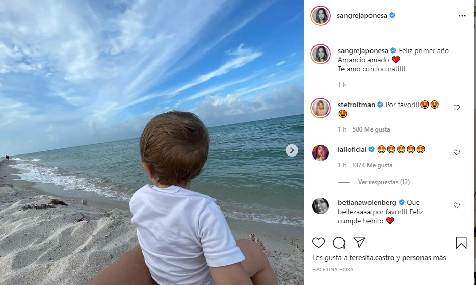 Este miércoles, el pequeño Amancio cumplió su primer año de vida y su madre retrató en las redes sociales hermosas imágenes celebrando el primer año de su bebé. Con imágenes inéditas la actriz declaró: "Feliz primer año, Amancio amado", escribió La China junto a un corazón rojo, y abajo agregó un contundente "Te amo con locura".