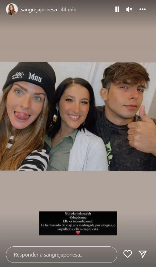 En esta oportunidad, la actriz y cantante plasmó en Instagram Stories una postal donde se la ve sonriendo a cámara mientras posa con el músico y su esteticista, a quien recurre para cuidar su piel y cuerpo. Además, no dudó en reflejar los resultados al subir una imagen en ropa interior, de espaldas frente a un espejo y con el jean bajo.