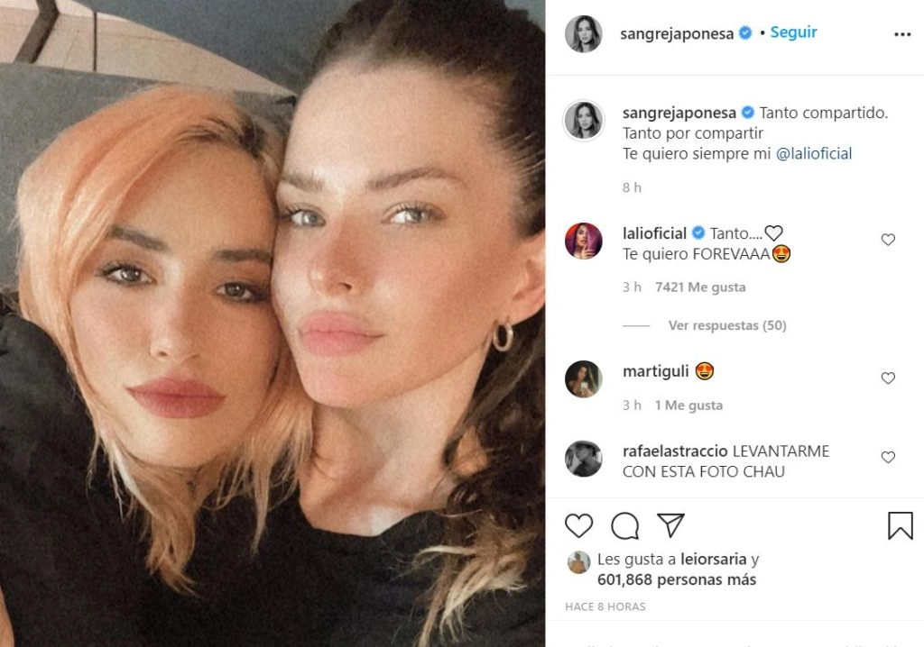 Lali, por su parte, replicó las publicaciones cariñosas de su amiga y les agregó corazones plateados. Cabe recordar que hace meses que las chicas expresaron que están con muchas ganas de volver a trabajar juntas. De hecho, hace unos días la actriz de Sky Rojo habló del tema.