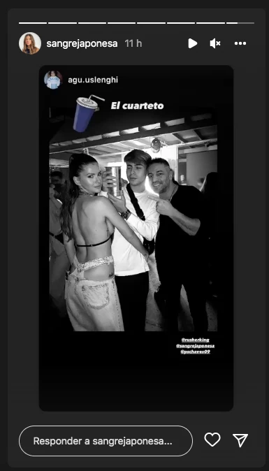 Con una serie de stories, la ex de Benjamín Vicuña realizó un pequeño registro de cada momento, como un video muy corto a bordo de su auto para reunirse con su novio, así como otras fotos en el interior de un bar abrazada al trapero.