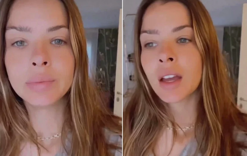 Y en ese andar por su casa la ex de Benjamín Vicuña dejó entrever cómo era la ropa de cama con la que se levantó, se subió al auto y fue hasta la institución educativa a dejar a sus hijos. A valerse por lo que se llegó a ver en las redes se trataba de un pijama de dos piezas en color gris clarito.