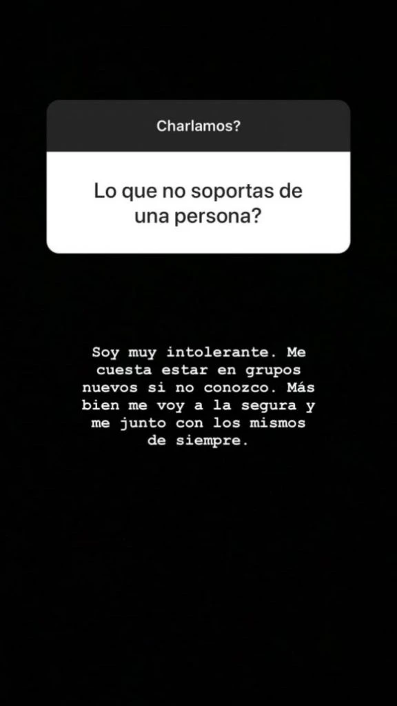 Dentro de una de las propuestas a los fans para que le transmitan preguntas, la China respondió a una consulta amplia: “¿Qué no soportás de una persona?”.