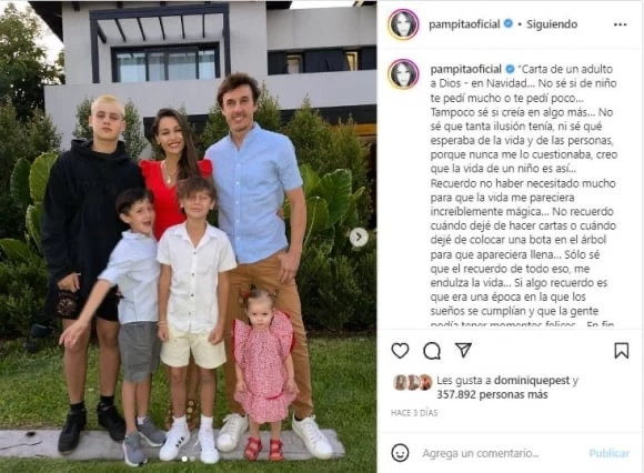 Con la llegada de Navidad y Fin de Año la sensibilidad está a flor de piel y los mensajes emotivos están a la orden del día. Pampita fue una de las personalidades que decidió compartir una tierna carta a través de su perfil de Instagram junto a una imagen de toda su familia.