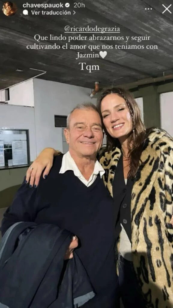 “Ricardo, qué lindo es poder abrazarnos y seguir cultivando el amor que nos teníamos con Jazmín. Te quiero mucho”, escribió la modelo mientras abrazaba al papá de su compañera quien al día de hoy no logra superar la repentina muerte de su hija.