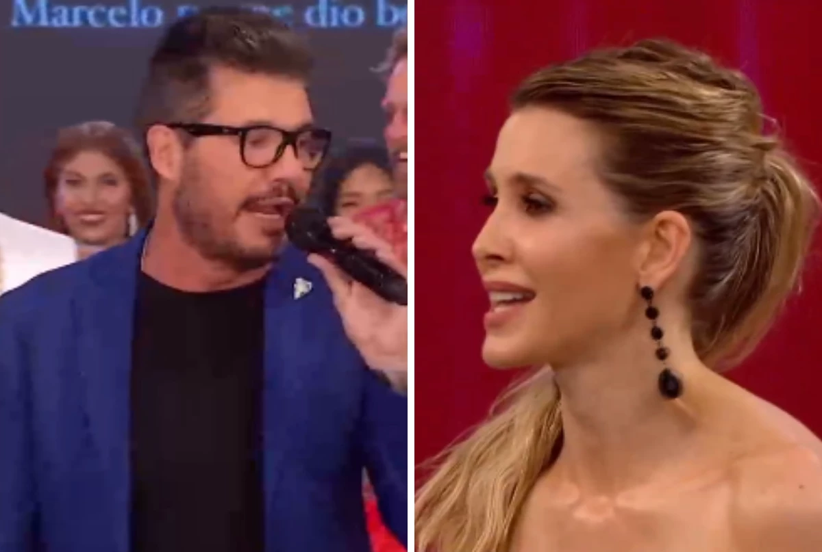 En el inicio del programa, Marcelo presentó como todos los días a los participantes del jurado y detalló los looks de cada uno. Sin embargo al dirigirse hacia su mujer y la vestimenta que eligió para el programa, el conductor dio información incorrecta y de inmediato lo corrigió su mujer.