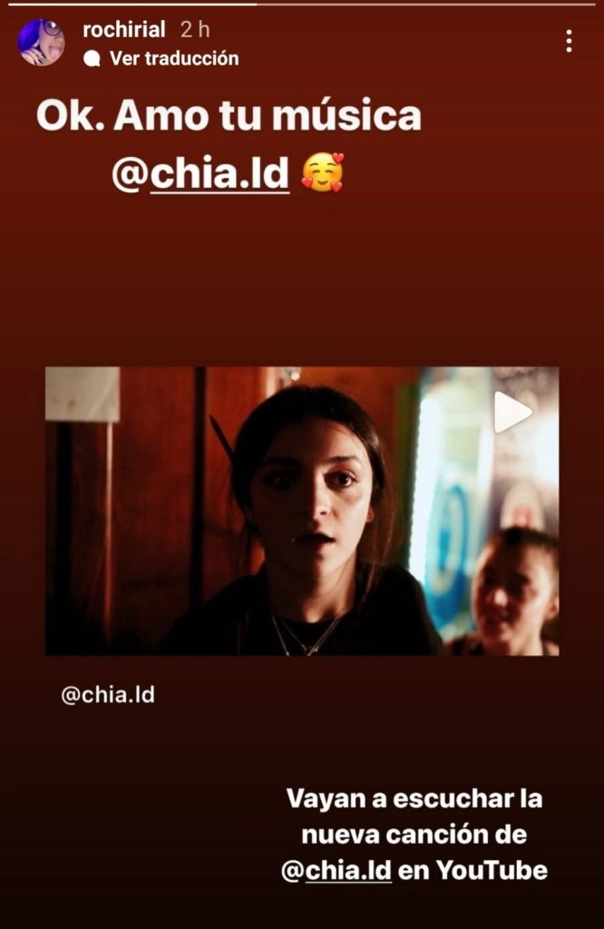 En su lugar, salió a bancar a una artista que admira, la cantante Chia. “Amo tu música. Vayan a escuchar la nueva canción de @chia.le en YouTube “, expresó la joven, que compartió su video.