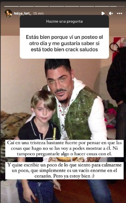Abriendo su corazón y sin ocultar sus sentimientos, la transparencia de Felipe conmovió a sus fans: "Y quise escribir un poco de lo que siento para calmarme un poco. Que simplemente es un vacío enorme en el corazón. Pero ya estoy bien”. Replicando su respuesta con una foto al lado de Ricardo, el adolescente logró mermar parte de su angustia.