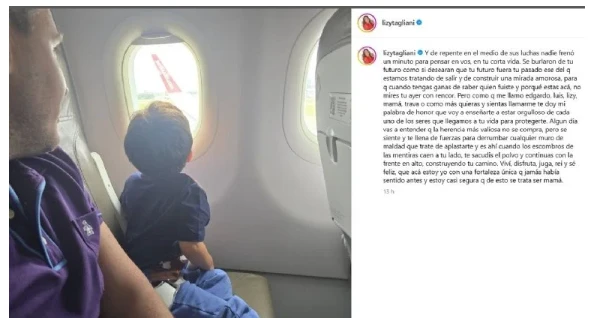 En la continuidad de su posteo, Tagliani añadió: “Se burlaron de tu futuro como si desearan que tu futuro fuera tu pasado. Ese del que estamos tratando de salir para construir una mirada amorosa". Y también realizó una referencia a todo este dolor: "Busco que cuando tengas ganas de saber quién fuiste y porqué estas acá, no mires tu ayer con rencor”.