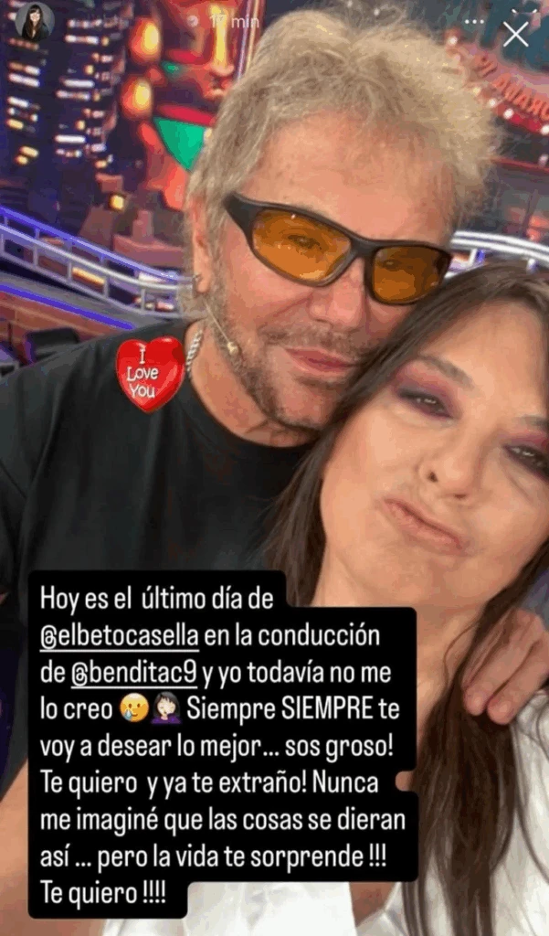 Quien no estuvo presente en el estudio durante la despedida fue Edith Hermida, aunque también eligió expresarse desde las redes. La panelista, que asumiría un rol clave en el futuro del programa, publicó un mensaje cargado de afecto: “Hoy es el último día de Beto Casella en la conducción de Bendita y yo todavía no me lo creo. Siempre te voy a desear lo mejor… sos groso”.