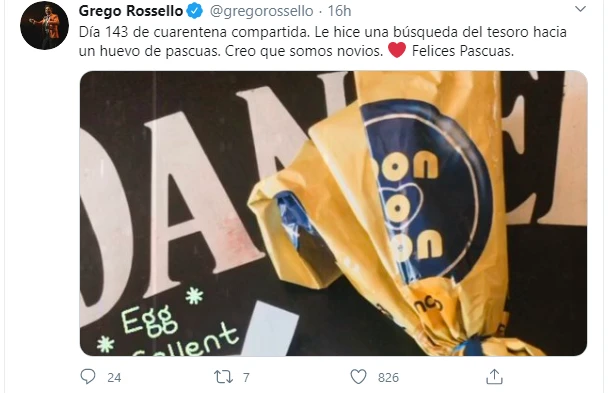 A Grego Rosello, el confinamiento por el COVID-19 le agarró de una manera muy particular. Justo estaba conociendo a una joven, con la que ahora pasa la cuarentena y se le ocurrió una original manera de proponerle que sean novios.