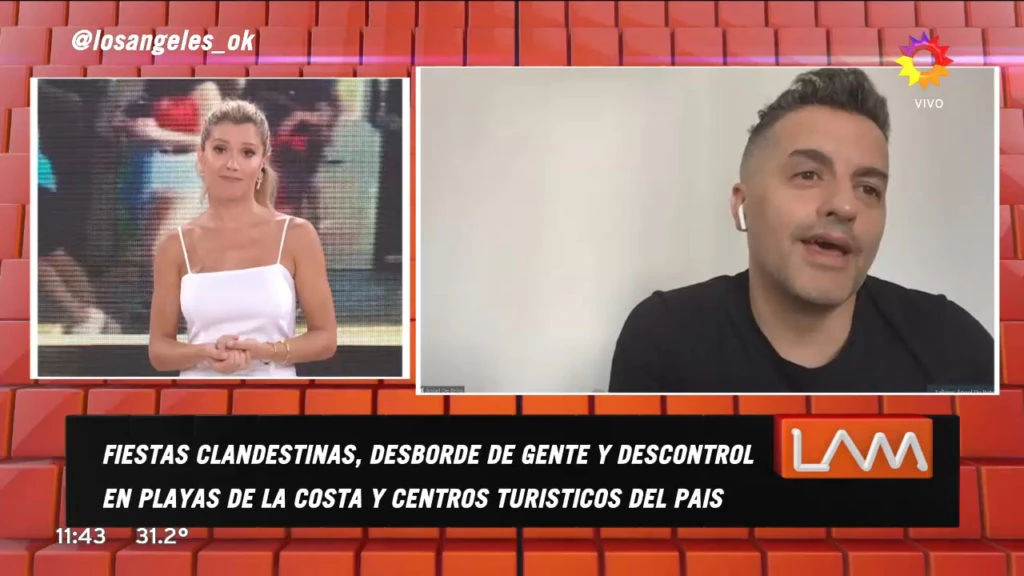 Para concluir, Ángel disparó contra los dichos de la conductora que advirtió que querían perjudicarla, y explicó que el mensaje de los trabajadores es porque están expuestos diariamente a contagiarse ellos y a sus familiares: “Además, creo que nadie quiso ensuciarla sino que surgió a partir de un mensaje de los trabajadores de América, que se sienten inseguros con una conductora que está haciendo una joda con 30 amigos, por más hisopados que estén. No se puede. ¿Cuál es la parte que no entienden de ‘no se puede’?”.