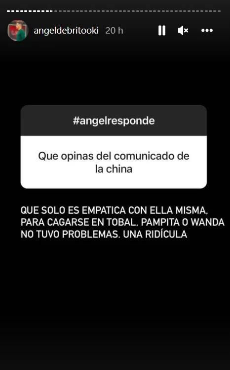 "Opino que sólo es empática con ella misma. Para cagarse en Tobal, Pampita y Wanda no tuvo problema”, dijo, y remató: "Es una ridícula". Y luego, cuando le preguntaron por qué se animó a mandar al frente a Suar, Ángel señaló: "Lo hizo porque la limpió de ATAV 2".