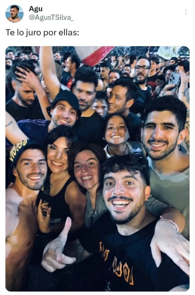 Las hermanas estuvieron en el campo junto a miles de fanáticos y se sacaron una foto con el usuario @AgusTSilva de X. La imagen se viralizó en cuestión de minutos, además de la frase que utilizó para su posteo: “Te lo juro por ellas”, una de las icónicas declaraciones de Diego. El disfrute fue total.