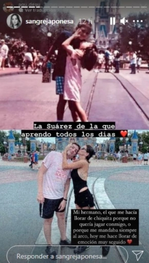 Claramente conmovida, la actriz decidió dedicarle unas líneas muy intimistas, en las que se expresó con total amor: "Mi hermano, el que me hacía llorar de chiquita porque no quería jugar conmigo, o porque me mandaba siempre al arco, hoy me hace llorar muy seguido pero de emoción".
