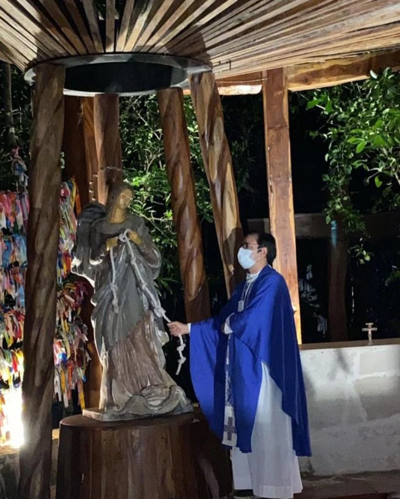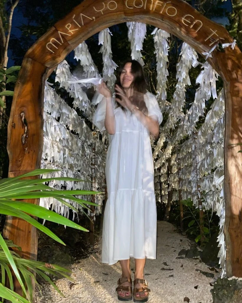 Como lo ha dicho en muchas oportunidades, la conductora de Pampita Online es muy creyente y aprovechó su viaje a la Rivera Maya para visitar el santuario de la Virgen Desatanudos y podere agradecer el pedido que le hizo un año atrás: quedar embarazada.
