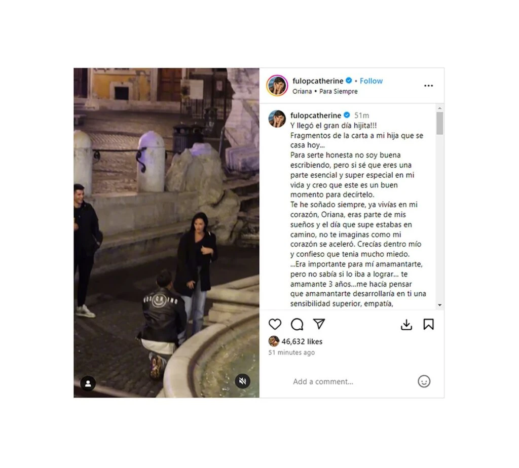 Oriana Sabatini y Paulo Dybala están a tan sólo horas de dar el sí y convertirse en marido y mujer. Las emociones están a flor de piel no sólo para los novios sino también para la familia de ambos. De hecho, hace algunas horas quien sorprendió con un posteo en su redes sociales fue Catherine Fulop.