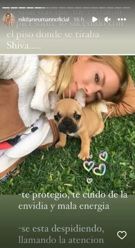 Así, luego de agradecer a quienes se sumaron al rastrillaje en el barrio privado donde vive y de despedir al animalito con un emotivo posteo, Neumann compartió con sus seguidores una extraña situación que ocurrió en el piso de su casa, en el rincón favorito de Shiva.