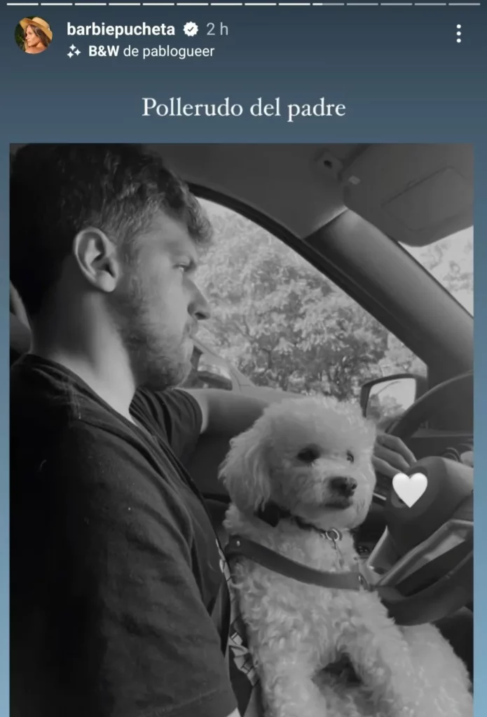 La hija de Nazarena acudió al humor para transmitir esa escena en sus stories y eligió una frase divertida: “Pollerudo del padre”. Así, la blonda especificó que Darwin, el caniche toy de color blanco impoluto, siente una conexión muy poderosa con Lucas.