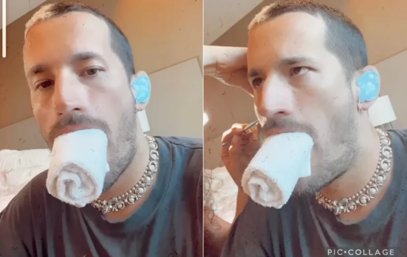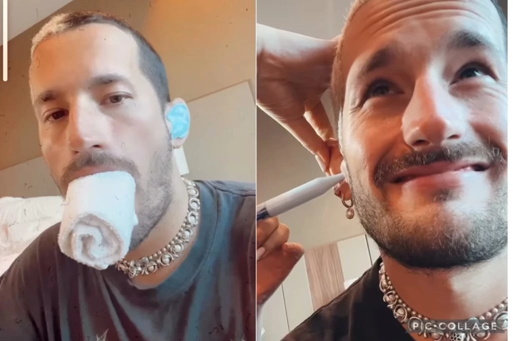 Como figura pública y de proyección internacional que se ha convertido de un tiempo a esta parte, a diario Ricky Montaner comparte en las redes sociales el lado B de la fama y popularidad. Y fue entre las tantas historias que sube a instagram que llamó la atención de su seguidores al mostrarse con un toallón en la boca y un pegamento en las orejas.