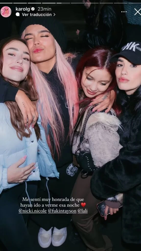 Mediante sus redes sociales, La Bichota decidió compartir varias fotos donde mostró quiénes fueron las famosas que estuvieron en el concierto de la colombiana. Karol G se mostró súper agradecida por la presencia de sus colegas y celebró con ellas.