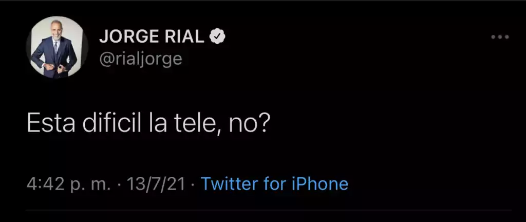 Tras ver este nuevo proyecto al aire, Jorge Rial decidió utilizar su cuenta de Twitter para, picante, escribir: “Está difífil la tele, ¿no?”. Estas palabras causaron un fuerte revuelo en el mundo de las redes y también en el de la televisión, ya que el periodista también había hablado días atrás de cómo veía al actual Intrusos.