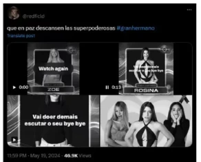 Al producirse su eyección del juego, las redes sociales explotaron con todo tipo de mensaje, pero se destacó uno, que refiere al final de una era, de una etapa, más precisamente de un grupo que se configuró en los primeros días de esta edición del reality: Las superpoderosas.