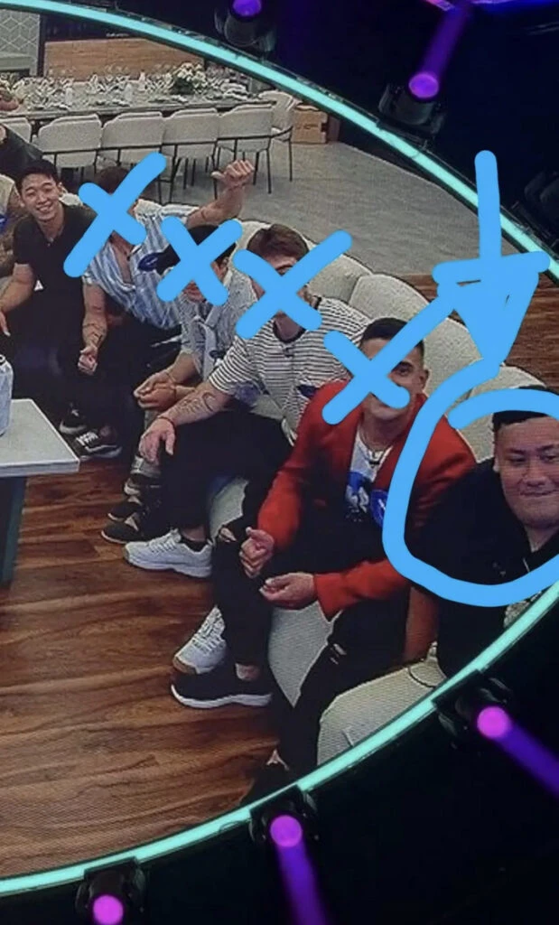 A partir de esto, comenzó a circular una imagen de cuatro de los participantes masculinos que ya no están (Hernán, Axel, Williams y Alan) junto a Martín Ku -líder de la semana- y Manzana. Lanimagen del Chino estaba sin tocar debido a su inmunidad, pero la cara del cantante de RKT puede verse con un círculo y una flecha que lo apunta como el próximo eliminado del reality.
