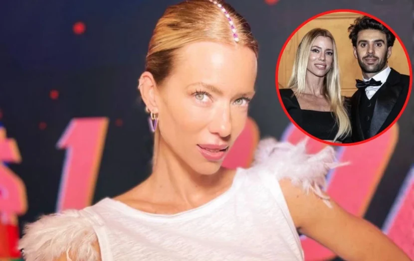 Los rumores surgieron luego de que la rubia publicara una foto en su perfil, en la que se le nota una incipiente pancita. En la imagen se encuentra posando con su novio y ambos están vestidos de gala y ella luce un conjunto negro; top con mangas largas con dos cintas plateadas que envuelven su abdomen y que se unen a una pollera tiro bajo con un tajo al costado.