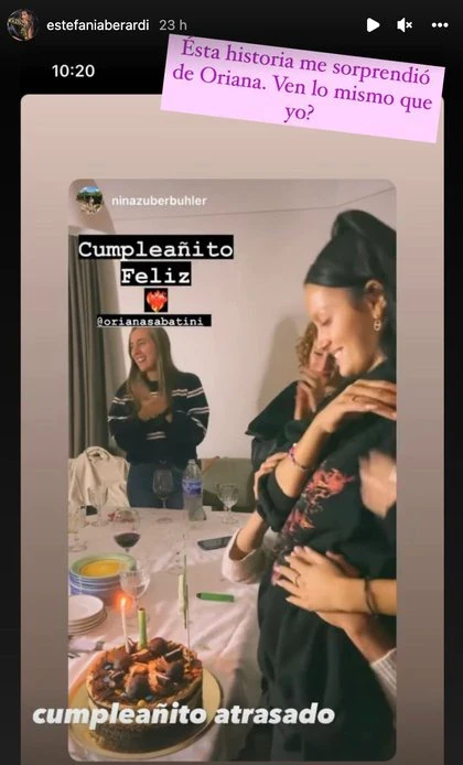 Con respecto a su cumpleaños atrasado, Oriana se sacó las típicas fotos frente a la torta cuando le cantan el feliz cumpleaños, pero varios sospecharon las posturas de la mano de una de sus amigas y el cuerpo que modela Sabatini en la imagen mencionada.