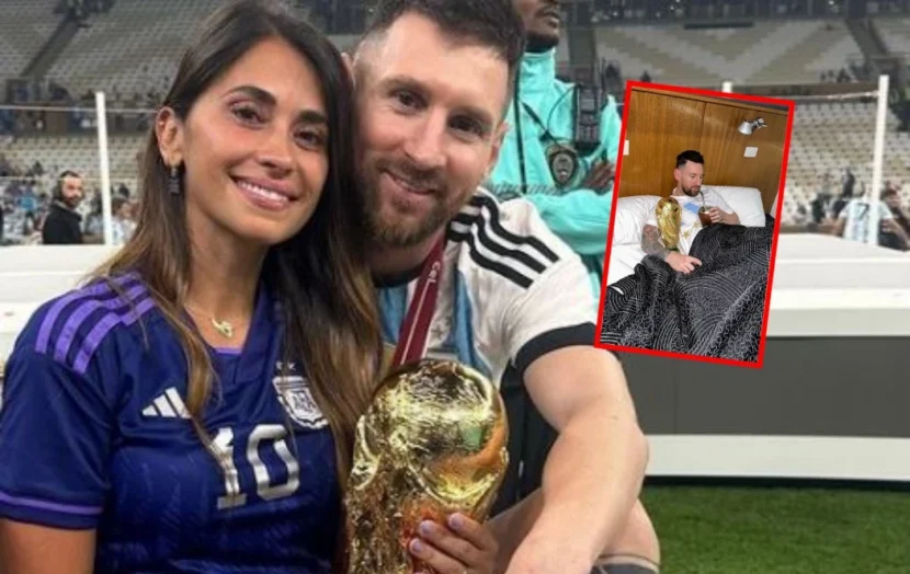 Y a la par de que Messi revolucionó las redes con su seguidilla de fotos, Antonela Roccuzzo mostró la selfie que él le mandó, también desde la cama, mirándola con amor junto a ese poderoso símbolo de la gloria futbolística que pesa seis kilos.