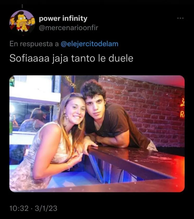 Todo se terminó por confirmar cuando el ciclo que conduce Georgina Barbarossa se comunicó con un amigo del hermanito, quien confirmó que había una mujer con ese nombre. Unos segundos después se viralizó una foto de la joven en cuestión: “Sofía, tanto le duele”.