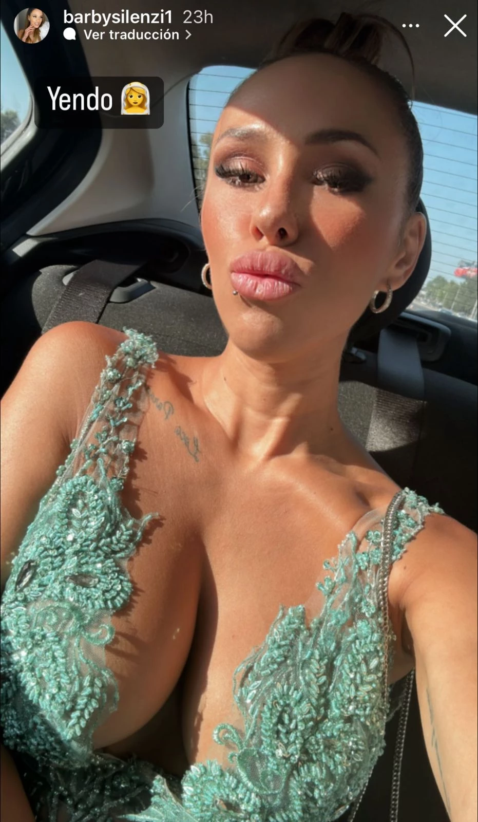 Barby Silenzy fue al casamiento deslumbrante con un vestido súper escotado y con tajo lateral color verde, junto a su amigo Matías Ciri.
