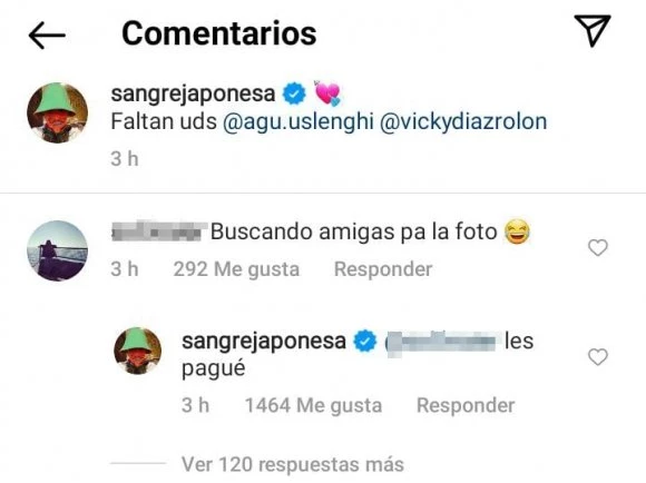 Una internauta sintió que disponía del derecho de opinar y juzgar el posteo y comentó: “Buscando amigas pa’ la foto”. Lejos de obviar semejante agresión, la China saltó a responder con vehemencia, impulsada en la bronca de leer esa acusación.