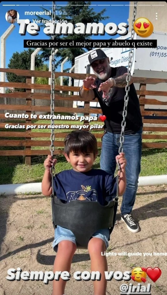 Y para clarificar su postura en todo este campo de batalla, la joven Rial posteó una instantánea de Jorge en pleno juego con su hijo Francesco,a la que le añadió bellas palabras de aliento. "Te amamos. Cuánto te extrañamos, papá. Gracias por ser nuestro mayor pilar. Siempre con vos", exteriorizó More.