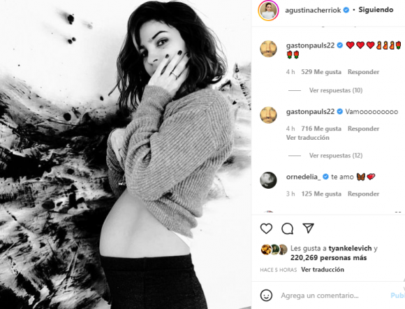 El actor y conductor felicitó a Agustina por la gran noticia y le escribió: “Vamooo”. Asimismo, Gastón le agregó algunos emojis de aplausos a fin de celebrar la llegada del bebé, por ende, del nuevo integrante de la familia ensamblada.