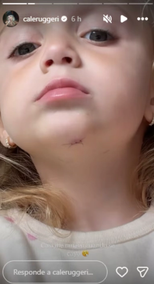 Ruggeri relató haber estado muy angustiada. Dijo que el accidente derivó en una visita urgente a la guardia y que los médicos tuvieron que hacerle una pequeña intervención. “Se cayó el otro día y le dieron tres puntos. Se la bancó re bien, es una genia”, contó. Y si bien se mostraba ya un poco más aliviada al contar el momento, también se mostró orgullosa por cómo se portó su hija.