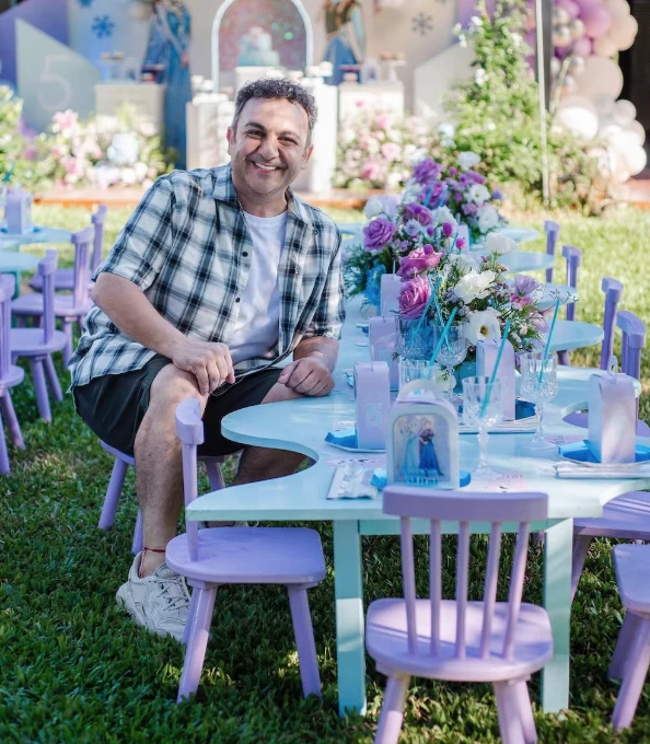 Con temática de Frozen, Topa organizó el cumpleaños de Mitai al aire libre, es que el animador infantil decidió decorar todo con las princesas Elsa y Anna de Arendelle de Disney a pedido de su hija, quien se muestra como una fanática de esta película.