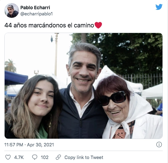Aquella vez, charlando con la AM 1330 La Salada, Pablo expresó su alegría contando que "Es una alegría muy grande porque ella fue voluntaria. Me emociona la decisión y la convicción de muchos chicos de su edad y el espíritu comprometido. Cuando terminó la dictadura había mucho miedo, mi viejo me advertía que no me metiera en política o no desarrollara el compromiso cívico que tienen los chicos hoy".