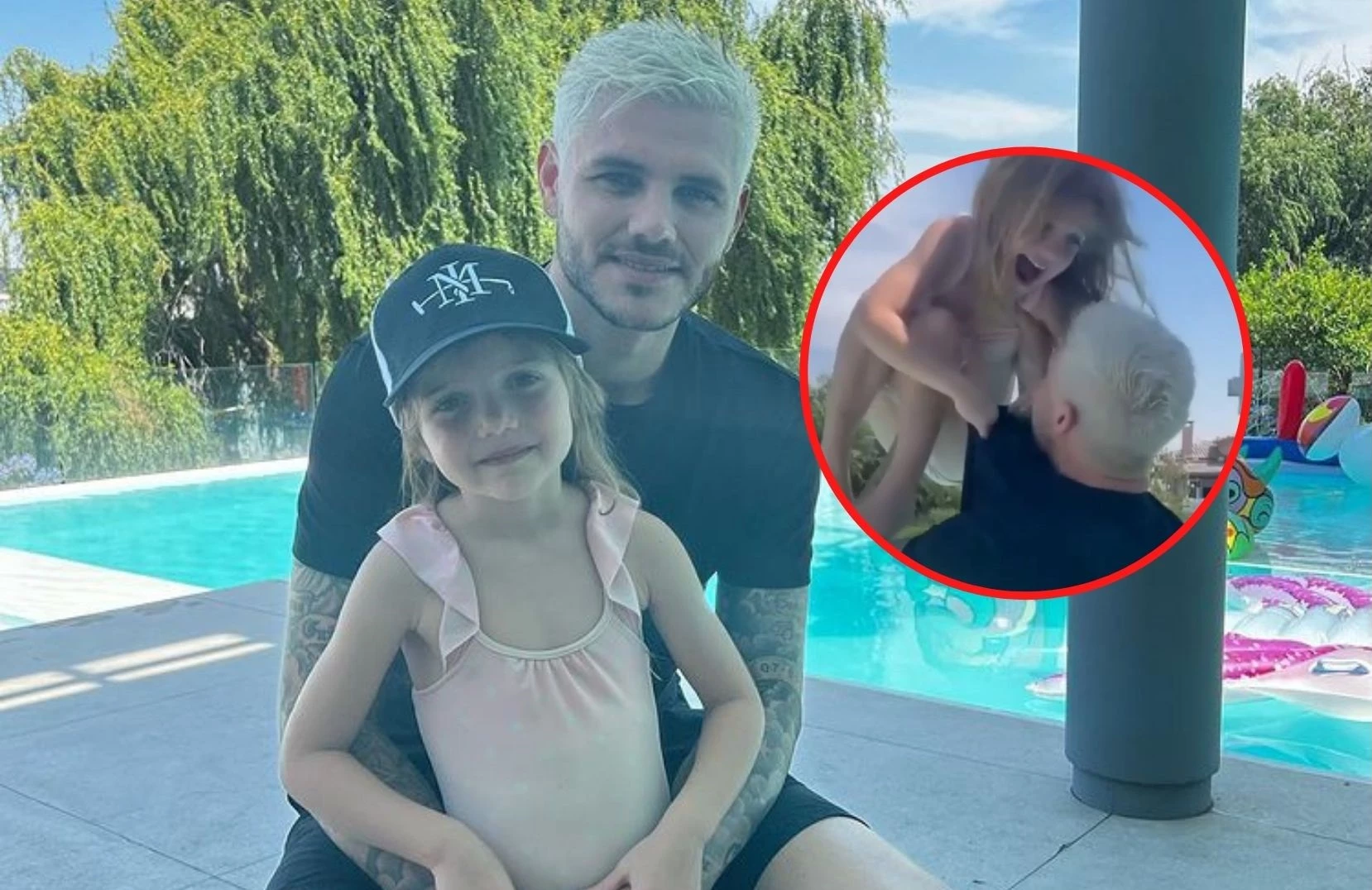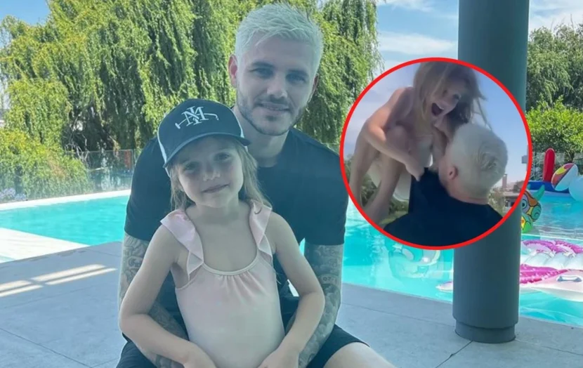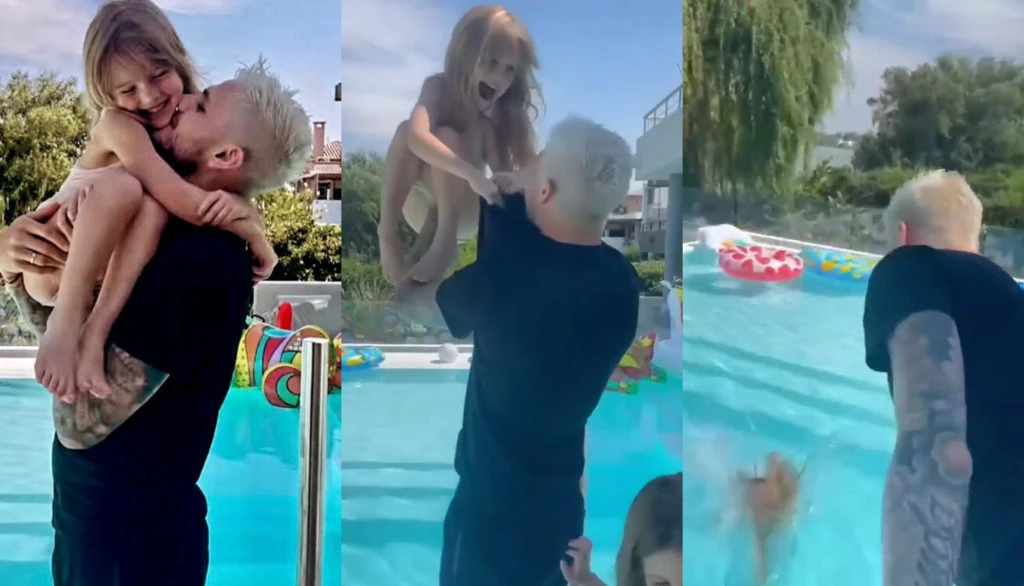 Es que, según mostró Icardi, la pequeña estaba disconforme con que la tirara a la piscina y aún así él lo hizo. A la nena se la vio a los gritos diciendo "No, papi" y agarrándose de la remera de su padre para que no la tirara, pero Mauro continuó con la idea de tirarla.