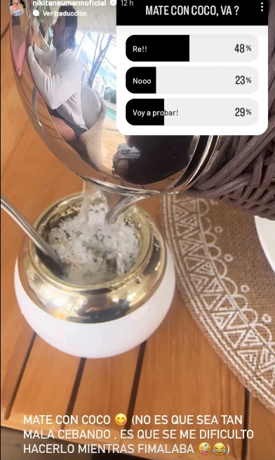 En una publicación en su cuenta de Instagram, Neumann preguntó a sus seguidores: "Mate con coco, ¿va?" acompañada de una encuesta para conocer la opinión del público.
