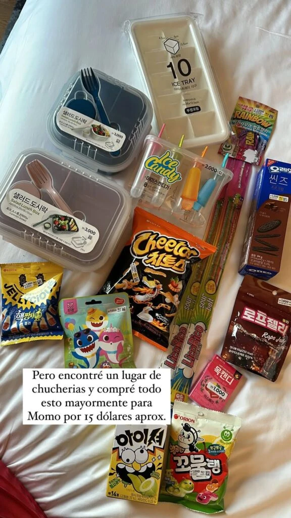 En cuanto hay precio de café que se tomó allí, dijo: “6500 pesos un café en un lugar lindo de Seúl. Les iré contando y mostrando más, pero por ahora es una ciudad limpia, linda y cara”. Además, gastó más dinero en regalos para su hijo: “Encontré un lugar de chucherías y compré todo esto para Momo por 15 dólares aprox”.