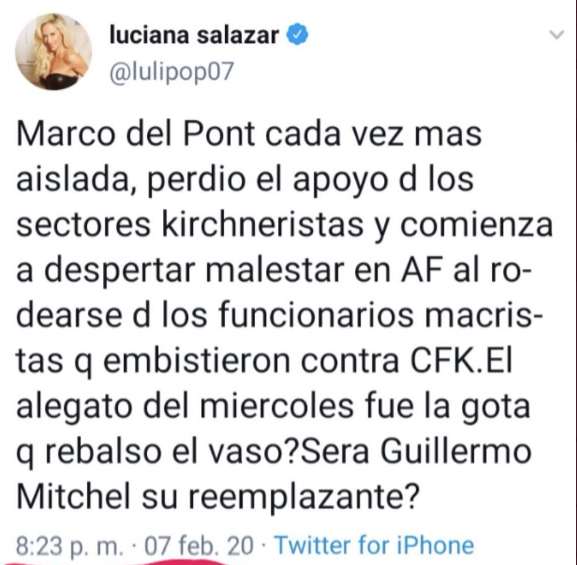 Desde hace un tiempo, Luciana Salazar se convirtió en una “especialista” en economía y política argentina y así también internacional. La rubia recibe información confidencial y luego hace los anuncios en sus redes sociales. Su informante es tan bueno, que las primicias suelen ser siempre correctas.