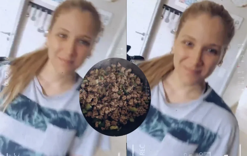 Mientras la productora teatral grababa un video de la sartén, en la que se veía una preparación de carne y vegetales salteados, de pronto, apareció Barbie gritando un contundente y fuerte “Noooo”.