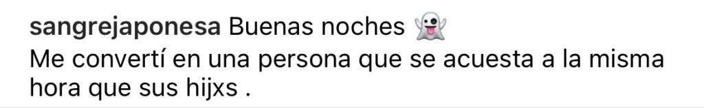 “Buenas noches. Me convertí en una persona que se acuesta a la misma hora que sus hijos”, confesó la China en el pie de foto donde la se ve a ella a cara lavada con su cabeza apoyada en una de sus manos. La actriz junto a la frase colocó el emoji de un fantasma.