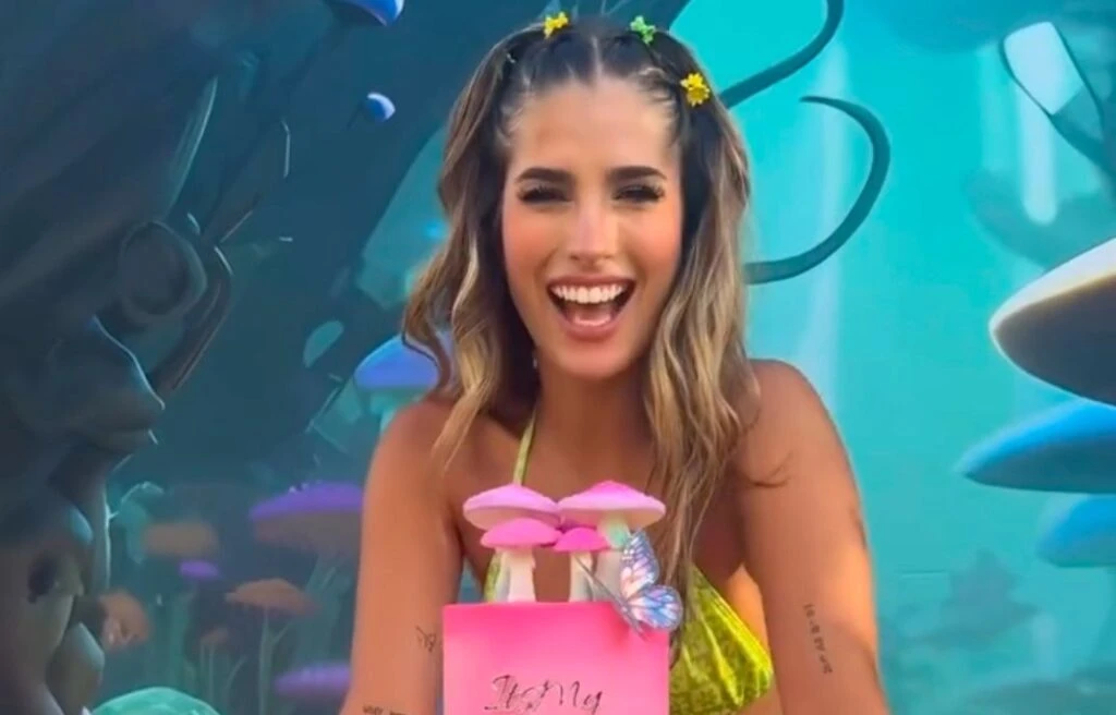 De esa forma, Juli apostó a una decoración que incluía globos de colores, luces de neón, hongos gigantes y flores, y en las horas previas a que comience la fiesta, en tanto lucía un micro bikini flúor, la propia modelo escribió: “No entienden el fiestón que se viene”.