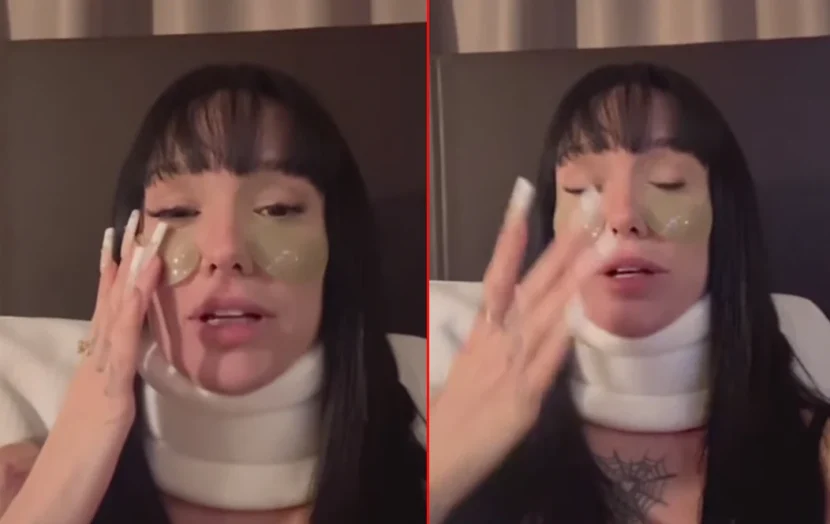 La Joaqui terminó por confirmar el trastorno que la aquejó: “Lo que pasó fue que en el segundo tema del show de Italia se me descolocó la clavícula”. Y así agregó más detalles de su estado actual: “Estos parches en los ojos no son por estética, es para que no vean que lloré, porque soy una chica ruda (bromeó)”.