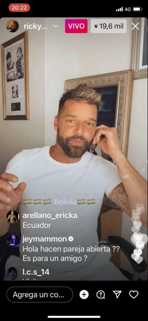 Si bien Ricky Martin obvió responder a la consulta, Jey Mammon intervino en el vivo e interrogó: “Hola. ¿Hacen pareja abierta? Es para un amigo”, ironizó.